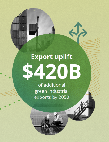 “Increases in productivity and innovation across connected supply chains and emerging technological processes grows Australia’s green industrial export opportunities by $420bn by 2050.”