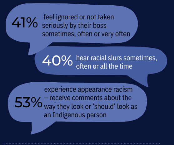 Gari Yala 2 (Speak the Truth), a survey of more than 1,100 First Nations employees by the Centre for Indigenous People and Work (CIPW) at the University of Technology Sydney, found that one in two (53 percent) First Nations employees still experience inappropriate race-based comments and assumptions at work.
